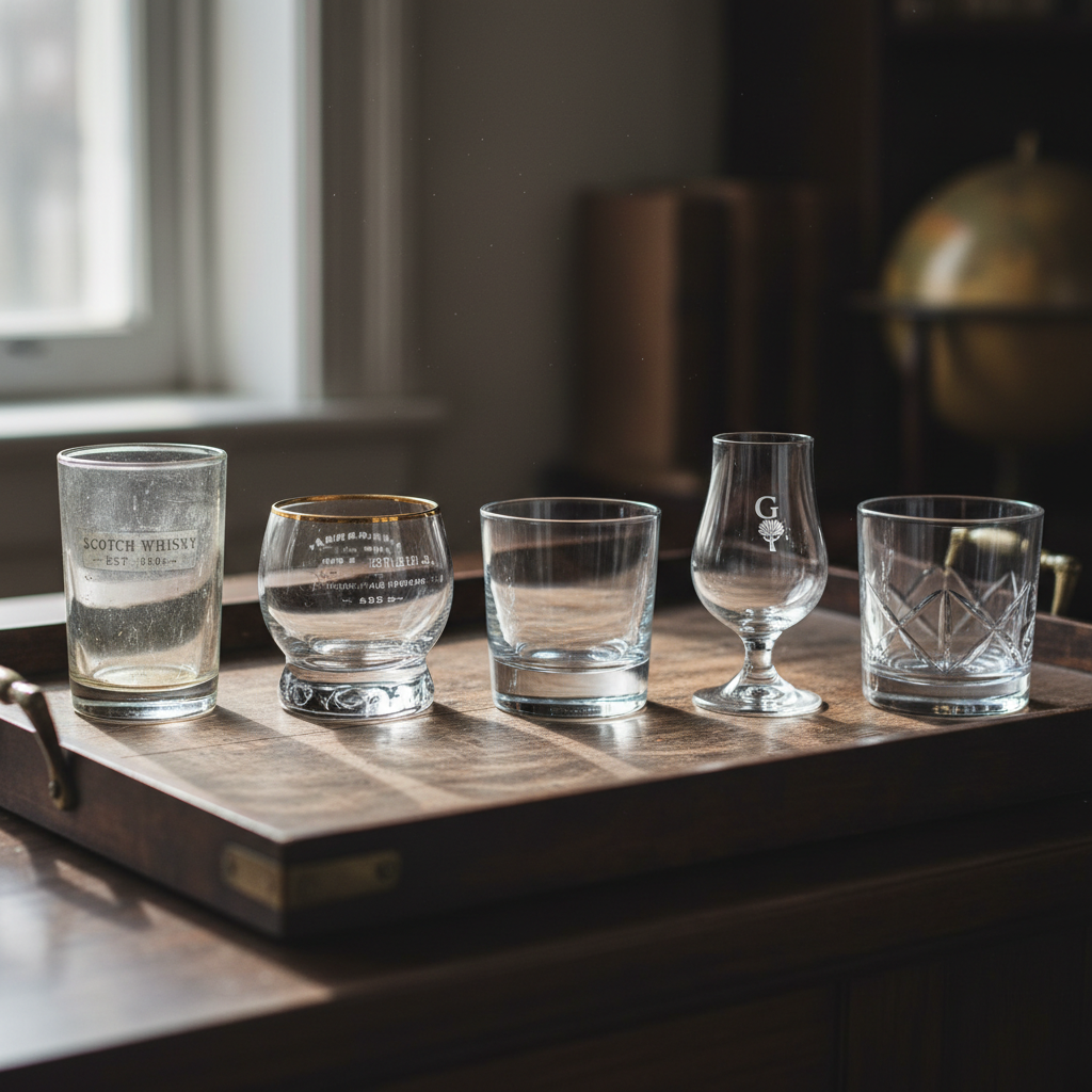 The evolution of these vessels tracks the history of the spirits themselves. The “tumbler” or “Old Fashioned” glass traces its origins to the 17th century, where it evolved from a “tumble-up”—a cup with a rounded bottom that couldn’t be put down until finished. As commercial glass production advanced, the flat-bottomed tumbler became the standard for serving spirits because it was sturdy, stackable, and easy to manufacture.